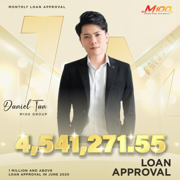 August 18, 2025 Posted by: Jie Min Tang Categories: No Comments Daniel Tan Monthly Loan Approval - 1 MillionJun 2025 出发,先完成再完美;出发,永远是最有意义的事 一起掌声恭贺卓越贷款顾问 Daniel Tan 在 2025年 6月份获得了【100万以上】贷款项目的批准! Daniel Tan 的贷款项目批准达到了 RM 4,541,271.55! 关于 Daniel Tan Daniel Tan 专页 ≫ 更多资讯 M100 超级团队奖项金榜