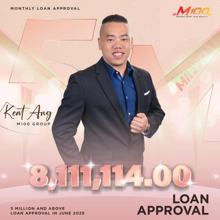 August 18, 2025 Posted by: Jie Min Tang Categories: No Comments Kent Ang Monthly Loan Approval - 5 MillionJun 2025 突破,从热爱着手,热爱的就是你擅长的 由衷恭喜 M100 的卓越贷款顾问 Kent Ang 在 2025年 6月份获得了【500万以上】贷款项目的批准! Kent Ang 的贷款项目批准达到了 RM 8,111,114.00!🥳🥳 关于 Kent Ang Kent Ang 专页 ≫ 更多资讯 M100 超级团队奖项金榜